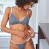 Corpiño triangulo con taza doble y less regulable realizados en modal morley ultra suave.