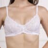 Corpiño con arco y sin relleno, íntegramente realizado en puntilla y forrado internamente con tul elastizado para evitar transparencias. Elásticos afelpados y correderas de zamac antialérgico.